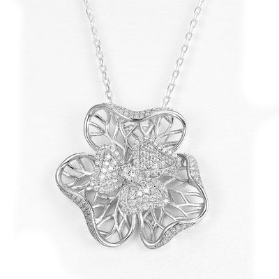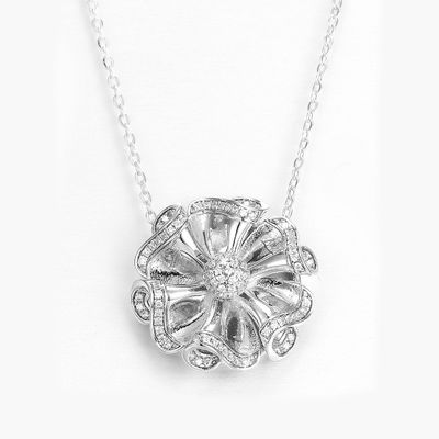 Flower Pendant 925 Silver CZ Chanel Pendant Silver Chain For Women
